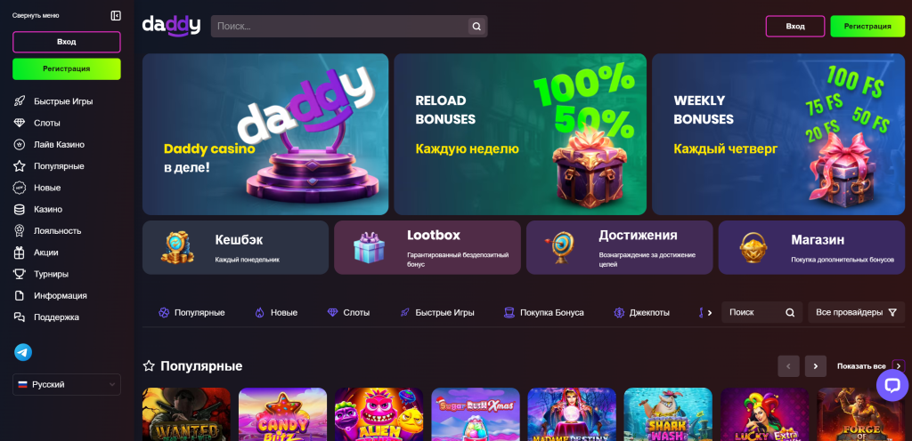Разнообразие игровых автоматов в официальном Daddy casino